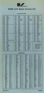 System IV/70 Machine Instruction Card SIV/70-04-1E 876000...